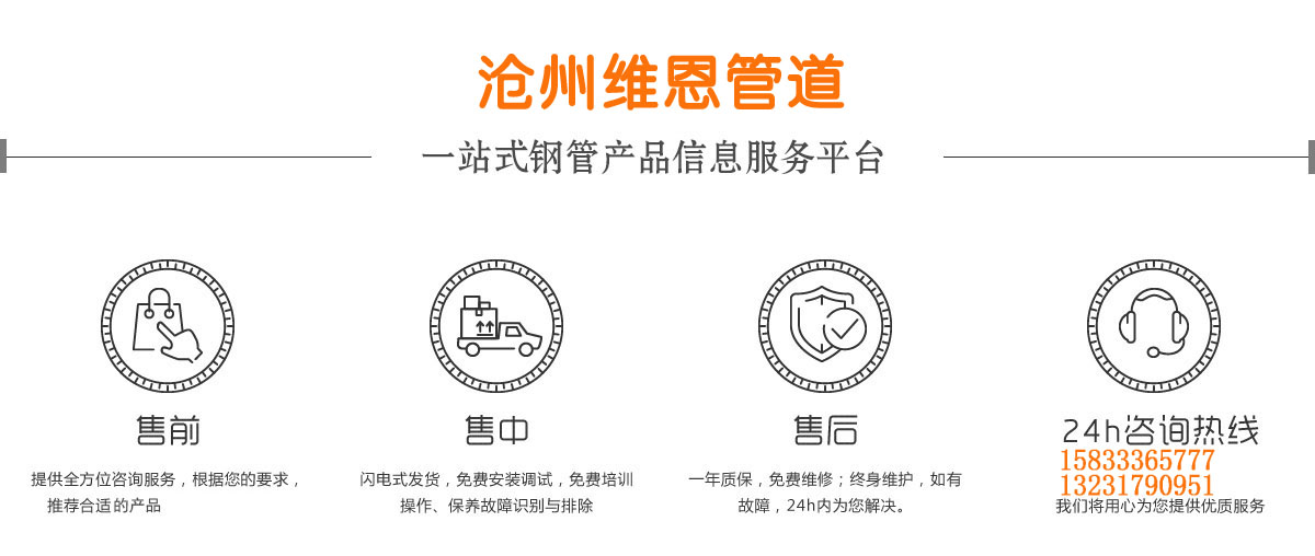 滄州維恩管道有限公司坐落在中國管道生產基地-鹽山縣管道開發區,是一家專業的防腐鋼管廠家,公司坐落于京滬鐵路、京滬高速、石黃高速、津汕高速、104、307、205國道分布于周邊或穿與境內,地理位置得天獨厚,交通運輸極為方便。豐富的地域資源,優越的區位條件,使我廠迅速發展成為集管道、管件、管道防腐研···